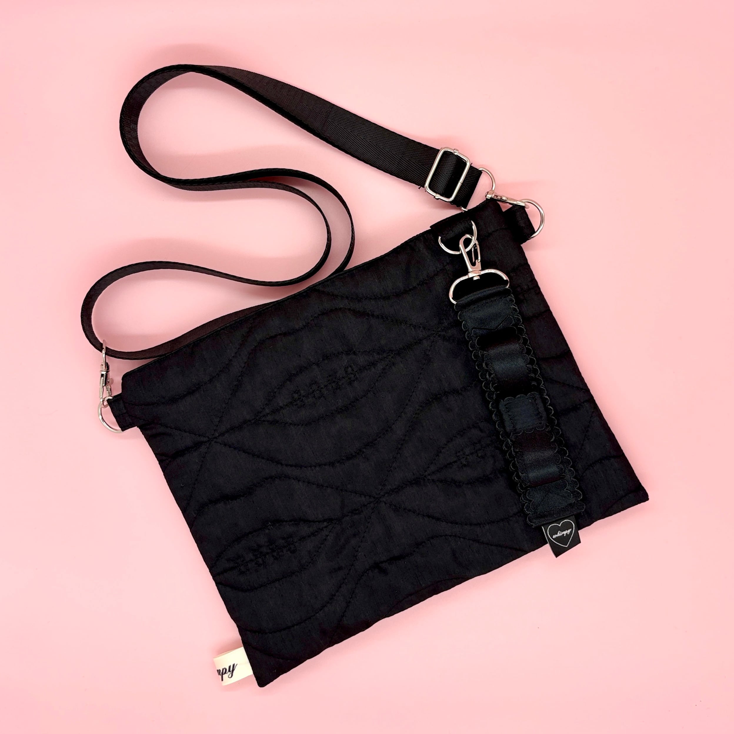 オリジナルのキルティングデザインが際立つこのサコッシュは、whimpy or somethingの特別なロゴであるく矯正リップ柄が魅力的。