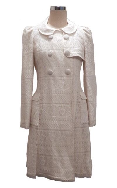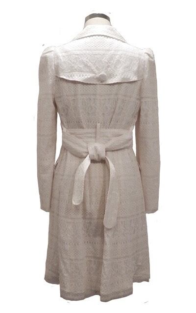 ♡説明:オールレースの繊細なトレンチコート。丸衿と大きなくるみボタンが目を引く贅沢な一着です。