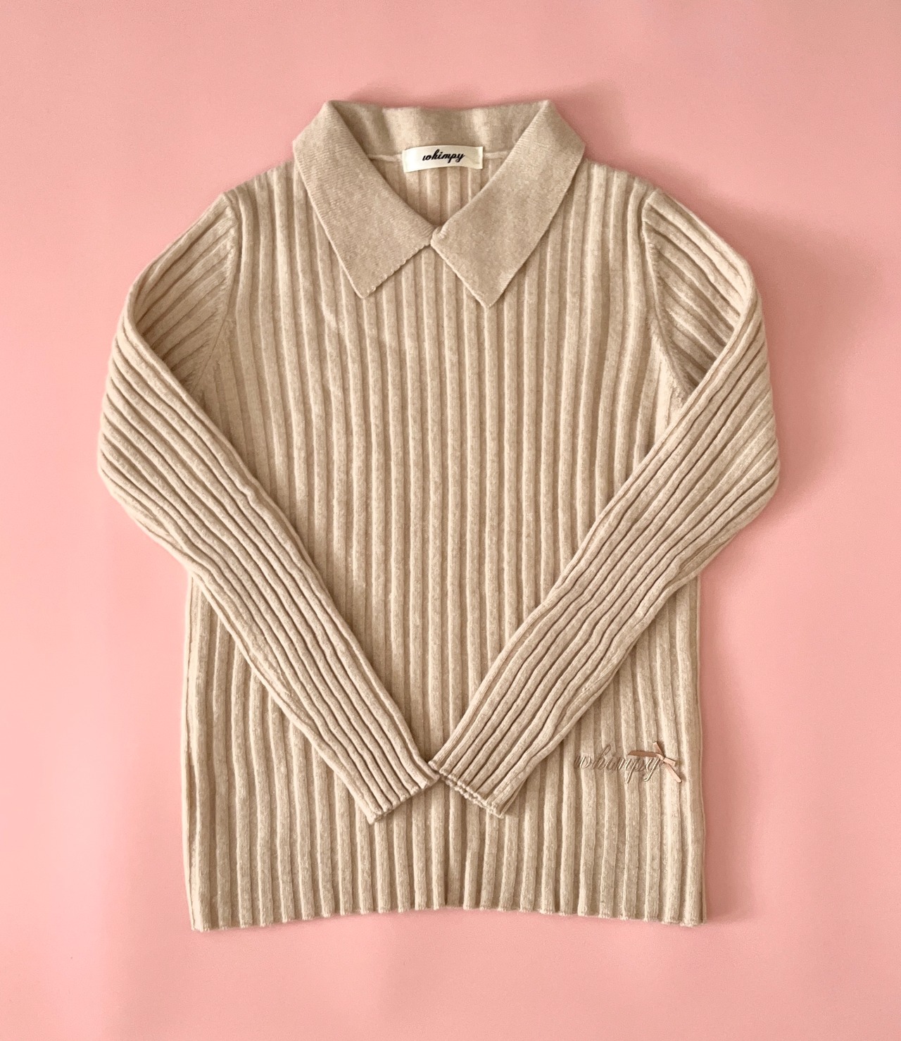 三角襟とワイドリブのデザインが、さりげないトラッド感を演出。